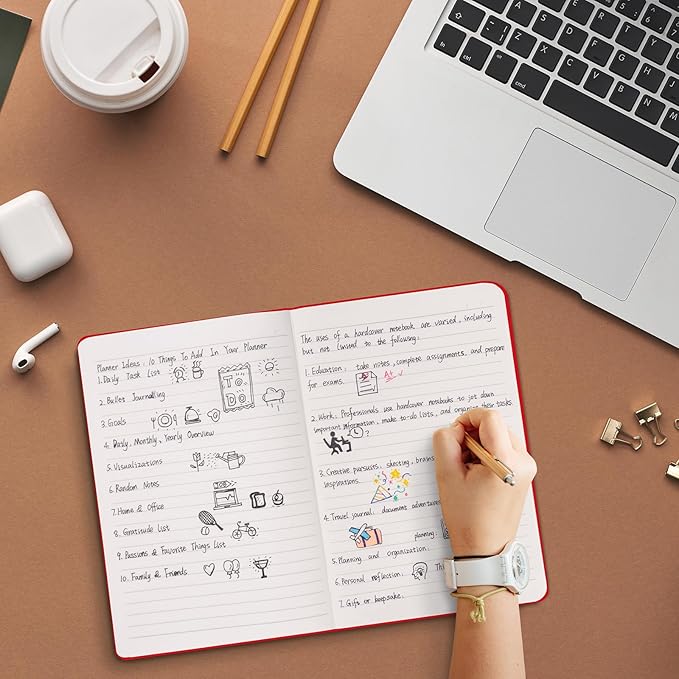 - 【Premium A5 Hardcover Journal】5.5"x8.3" (14x21cm) College-Ruled, Journaling Notebook with 120 Sheets (240 Pages), Featuring Soft-Touch Vegan Leather Cover for Daily Writing Durability.