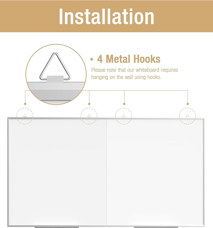 - 🌟✔ 【Flexible Mounting Options】 This whiteboard comes equipped with metal hooks on the longer side, designed specifically for horizontal mounting, ensuring an effortless installation to fit your space needs. Additionally, the double-sided foam tape on the back of the board guarantees a sturdy and shake-free writing environment.
