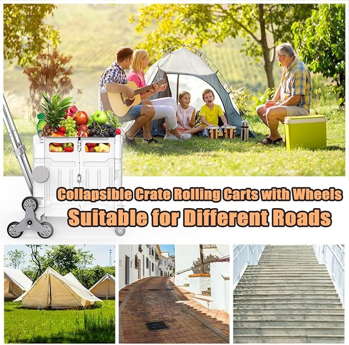Foldable Utility Cart with Stair Climbing Wheels,Folding Portable Rolling Crate Handcart with Aluminium Alloy Telescoping Handles, Handcart for Grocery Book File Tool Art Supplies