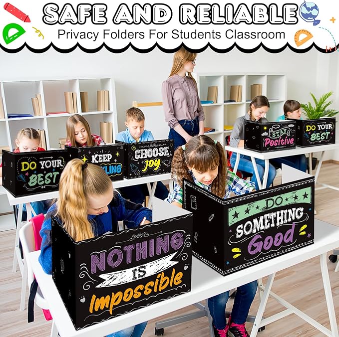 - Package Includes: you will receive 24 pieces of privacy folders for students printed with 6 types and 4 in each design, you can apply them to your classroom desk, with enough quantity, meeting your daily use needs: the dividers come in enchanting colors as depicted in the pictures, capturing the essence of creativity in the sturdy cardboard material