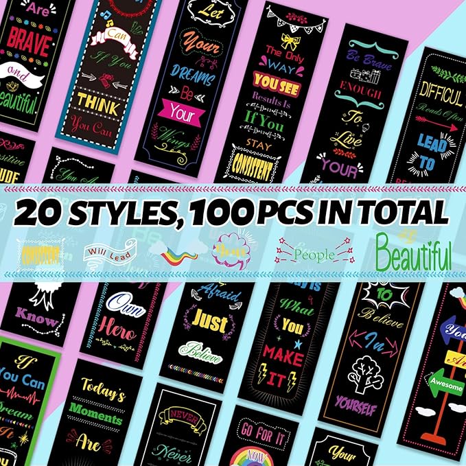 - ♥ Bookmarks Include: 100 Pcs of Motivational Encouraging Inspirational bookmarks in 20 styles, beautiful and practical, the quantity fully meets your needs.