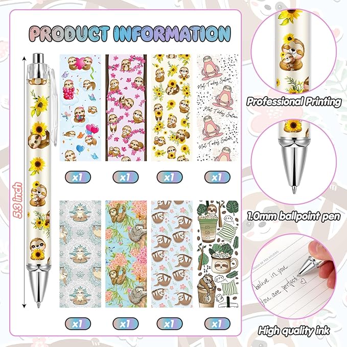 - What You Will Receive: there are 8 sloth ballpoint pens with different styles in the package, the sufficient quantity and variety of styles are enough to meet your various needs on different occasions; They can also be applied as party favors and holiday gifts for relatives and friends