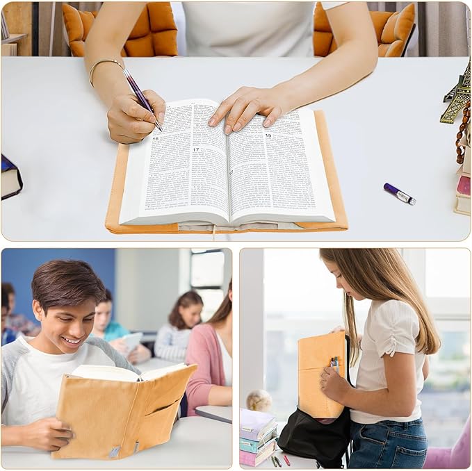 - đź•®Adjustable Size -The width of the book project is adjustable, the height is 8.5", width is 4.5-8". Please measure your Bible book Bible Study size and compare the Bible cover size to purchase.
