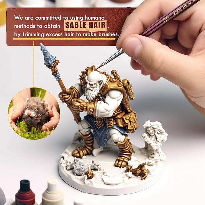 Kolinsky Sable Miniature Paint Brushes - Professional Detail Brushes, Golden Maple Ultra Fine for Miniatures, Details, 40k, Fingure, D&D, Size 00, 0, 1