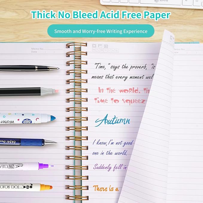 - 300 Page Notebooks College Ruled: 8.5"x11", large a4 notebook for notes on the same page. Generous 150 sheets/300 pages lined notebook with 7.1mm spacing, “Memo No” and “Dates” on the top of each page for neat writing and easy reference.