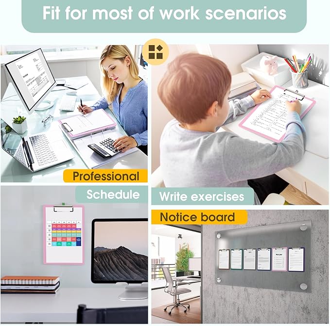 - Strong Plastic Clipboard: Our clip board is made of strong and high-quality plastic material, Making them very strong, Not easy to break, Clipboards with high-gloss surface and sturdy base. Cleanable and waterproof