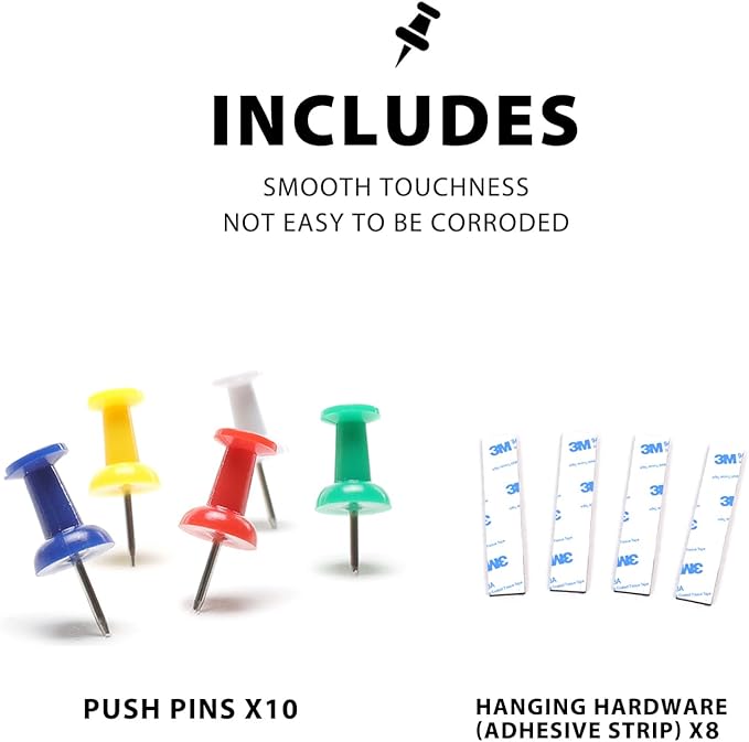 - CCESSORIES INCLUDED – Comes with mounting hardware and push pins for quick posting For best results use Corksidol Accessories, sold separately Board measures 48" x 1"