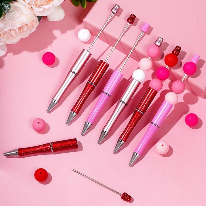 - Large Quantity Beadable Pens Bulk: The package comes with 30pcs valentines day pens, and the color of refills is black, including 3 different colors. enough quantity and color for you to use for a long time