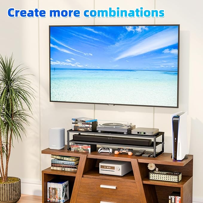 - SPACE SAVING, STABLE AND RELIABLE: Two tiers space 30.5 "x10" can efficiently and flexibly hold large gaming keyboards, Xbox consoles, cable boxes and other large items, Non slip suction cups on the bottom keep you stable while you work