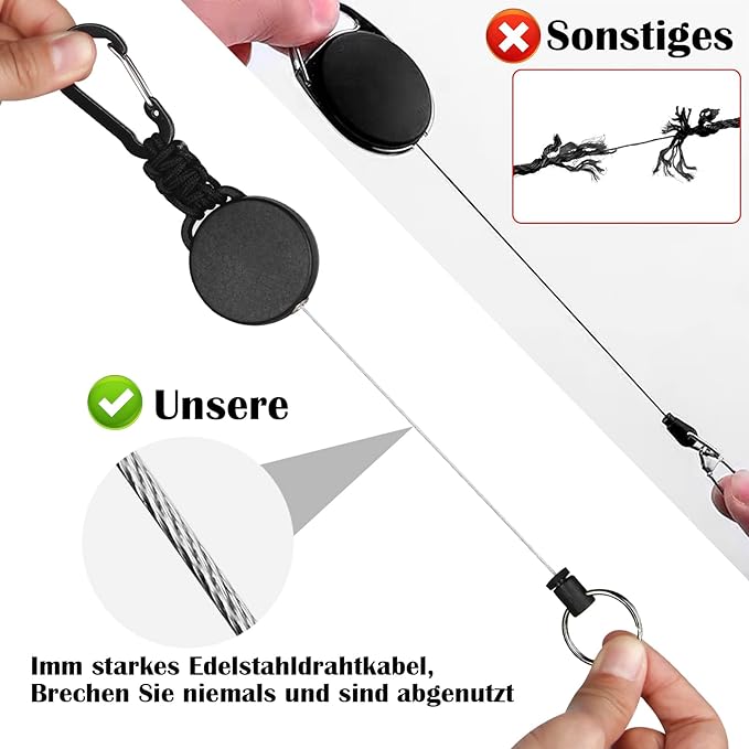 - Heavy-Duty Steel Wire & PVC Coating: 8.8 oz Load Capacity, 100K+ Smooth Cycles, Military-grade 1mm steel wire with scratch-proof PVC coating withstands 100,000+ retractions under 8.8 oz loads. Proven 2x stronger than standard retractable keys.