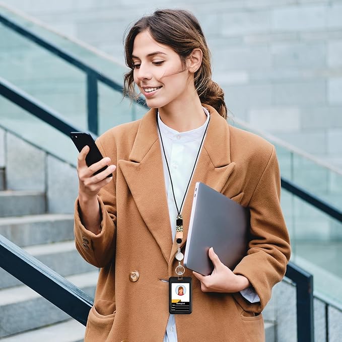- Safe and Durable Material: Quprofa badge lanyards are made of high-quality black or gold satin nylon ropes, the material is soft, smooth and comfortable to touch;The silicone beads and ABS Card Holders are strong, lightweight, safe and skin-friendly;The transparent ID Holders are made of high-quality PVC material, which are waterproof and wear-resistant