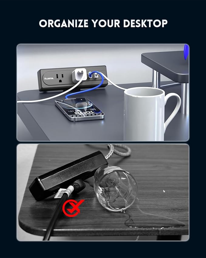 - 🌏【Desk Power Strip with USB Ports】 Equipped with 2 AC outlets, 1 USB-C port, and 1 USB-A ports, Offers a space-saving solution by securely attaching to the edge of your desk, providing easy access to multiple outlets without taking up valuable surface space, Ideal for offices, home workstations, or gaming setups.