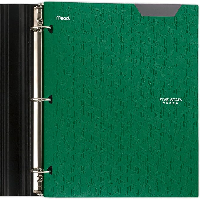 Five Star 2-Pocket Folder, Plastic Folder with Stay-Put Tabs, Fits 3 Ring Binder, Holds 8-1/2" x 11" Paper, Green (333420E-ECM)