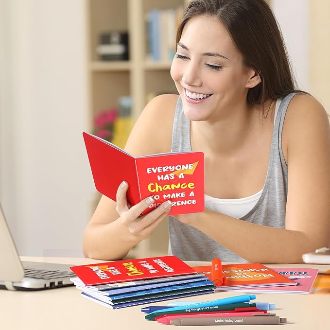 - Motivational Gift Set: the package comes with 32 pieces of inspirational gifts, including 16 pieces of inspirational pens in 8 classic colors and 16 pieces of inspirational mini notebooks in 8 different styles, enough amount can meet your various needs