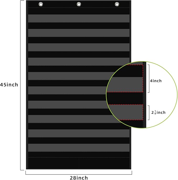 - ※【Large Size with 2 Extra Storage Pocket】This Large size standard pocket chart measures 45”H x 28”L ,10 clear deeper pockets with 2 extra storage pockets, can organize the cards easily when it is not in use.10 clear straps are spaced 4” apart, fits 3” to 4" sentence strips or word cards,the pockets have lots of space between lines so that you can arrange the sentence strips optionally.