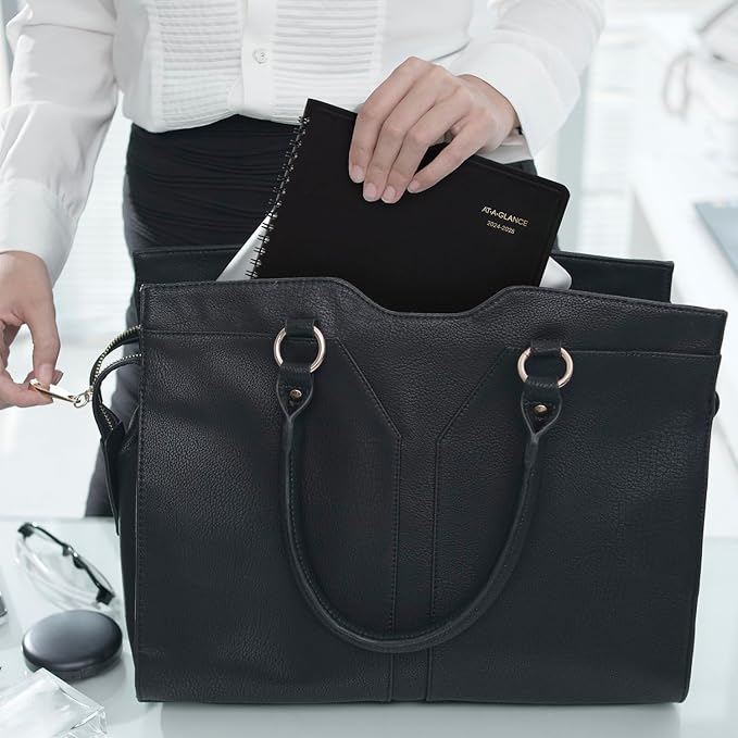 - PROFESSIONAL DESIGN – Take charge of your schedule with classic style. Planner has a black, faux leather cover and twin wire binding to help keep pages secure.