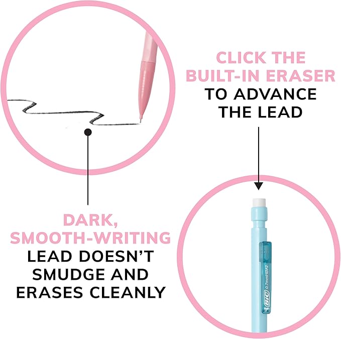 - One 40-count pack of BIC Xtra-Smooth No. 2 Mechanical Pencils With Erasers and Pastel Barrels