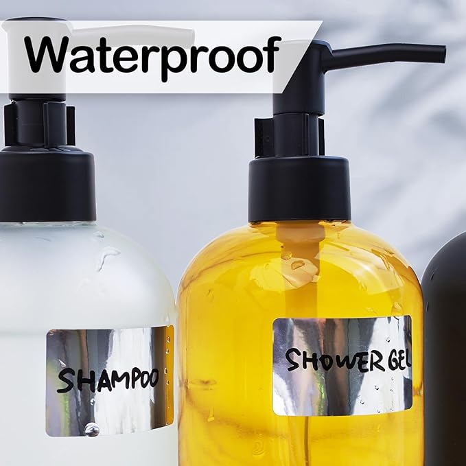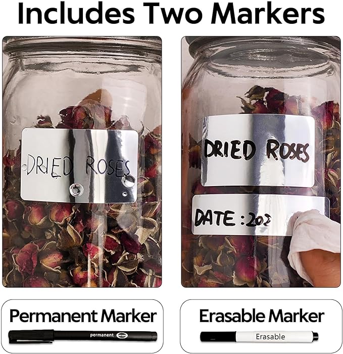 170Pcs Brightsilver Removable Labels for Jars,for Storage Bins,for Food Containers with 2 Liquid Chalk Marker(Brightsilver)