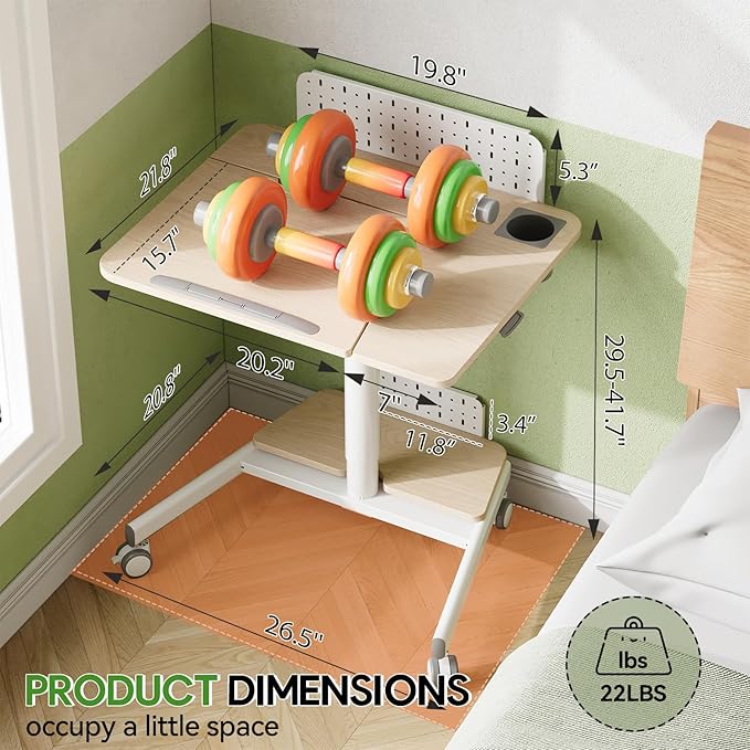 - Spacious Desktop: The desktop of the mobile desk measures 27.6x21.6 inches, including a device slot and a cup holder. Flippable anti-slip strip protects the laptop from falling when used at an angle. The built-in folding board measures 20.2x15.7 inches
