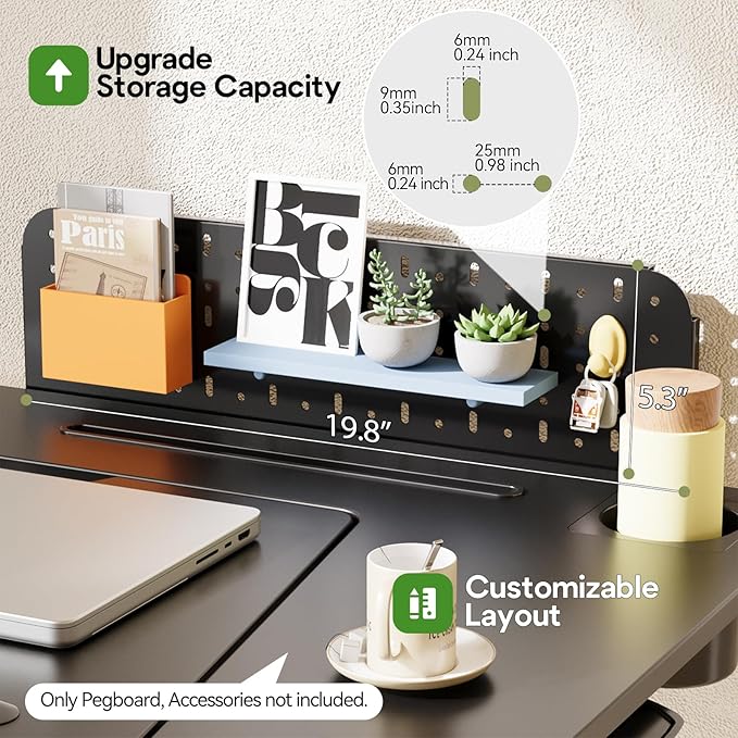 - Better Storage Design: Special DIY pegboard creates the best storage solution for the small items on your desktop. The width adjustable base board provides you with two optional sizes to place your bag or host on