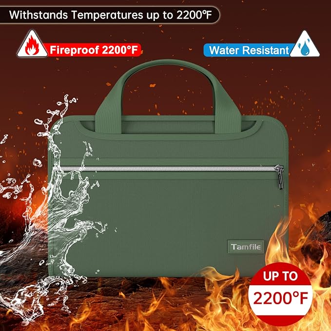 - [Tamfile Fireproof Storage Folder] The surface is fireproof, waterproof, and dustproof. The folder surface is made of fireproof and waterproof upgraded silicone fiberglass fabric, which can withstand temperatures up to 2200°F and has passed SGS testing (UL94 certification). File folders protect valuable items and information. Save and organize your valuable materials, artifacts, important documents, office supplies, and more with our advanced fireproof multipurpose folders.