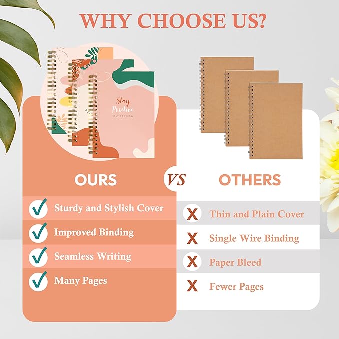 - 𝐕𝐄𝐑𝐒𝐀𝐓𝐈𝐋𝐄 & 𝐏𝐎𝐑𝐓𝐀𝐁𝐋𝐄: These spiral journal notebook are perfect for all your needs, whether journaling, planning, or organizing thoughts. Its lightweight, portable design allows you to take it anywhere, ensuring you’re always prepared to jot down ideas on the go.
