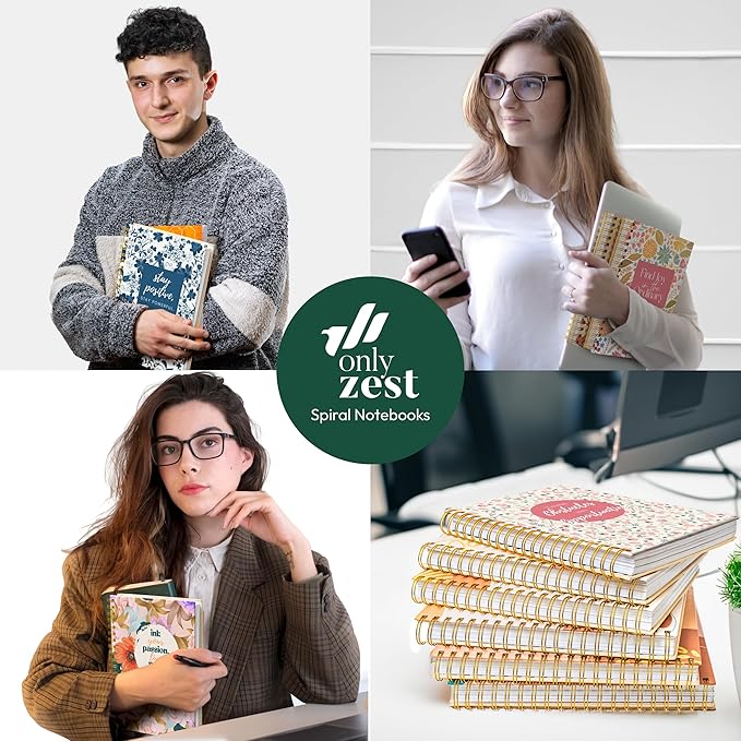 - PREMIUM QUALITY THAT LASTS: Our large-sized notebook (10.25"" x 7.25"") provides ample space for creative writing, note-taking, meeting or lecture notes, recipes, project planning, drawing, sermon notes, or bible journaling. It features 300 thick ruled pages made from premium paper, minimizing ink leakage. The strong double gold metal spiral binding ensures the notebook lays flat and securely holds pages in place, allowing for easy tearing out, turning in work, or passing notes in class.