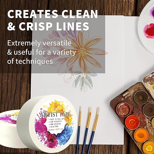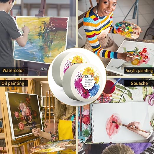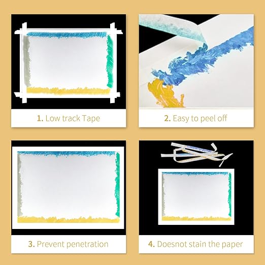 - 【Easy Peeling】The artist tape for watercolor paper is made of crepe paper, it can be torn apart by hand with gentle force. The white tape with low viscosity features that is easy to peel off without any damage to the watercolor paper. More efficient and convenient for painter. Please don't stick/peel this tape on/off paper with a intended strong strength. It is recommended to use in the temperature range of 8-38°C for the best effect. Not recommended for use at temperatures below 0°C. Too low temperature would make the adhesive of the tape low. Too high temperature would cause residue.