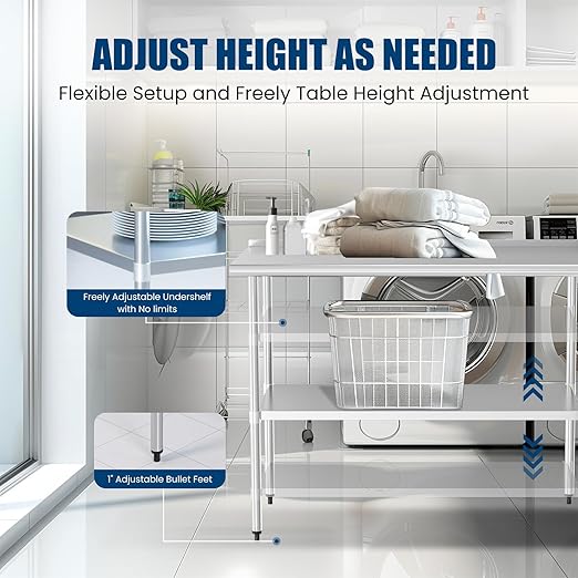 - Enduring Quality: NSF certified, stainless steel work table is made from premium 430 stainless steel for the tabletop and galvanized steel for the undershelf, resistant to wear and corrosion. Ideal for the demands of commercial kitchens