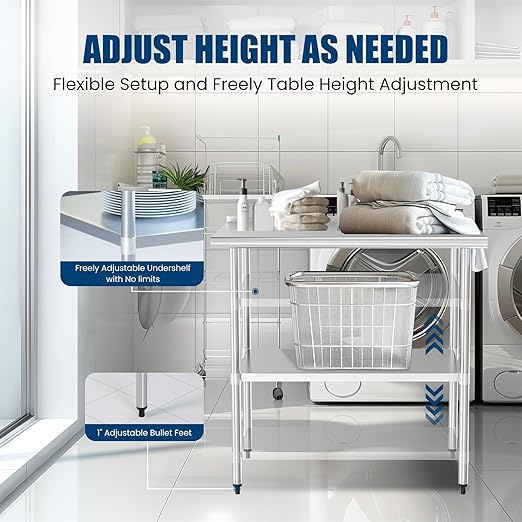 - Enduring Quality: NSF certified, stainless steel work table is made from premium 430 stainless steel for the tabletop and galvanized steel for the undershelf, resistant to wear and corrosion. Ideal for the demands of commercial kitchens