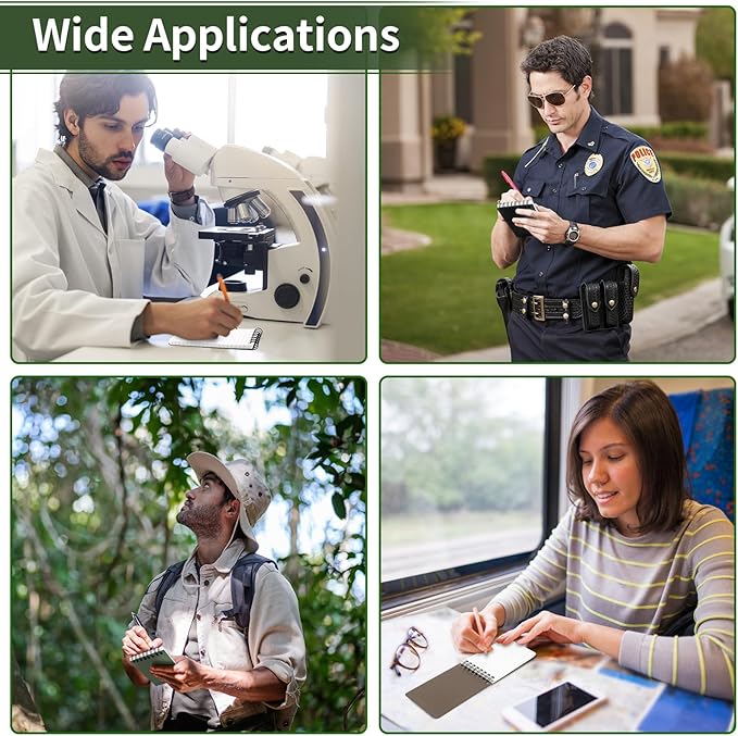 - POCKET SIZE: Waterproof pocket notepad measures 3×5 inches. The small pocket size and sturdy design can be used as a police notepad, golf notebook, diary, memo, field book, or notepad. With a ruler printed on the pocket notebook back