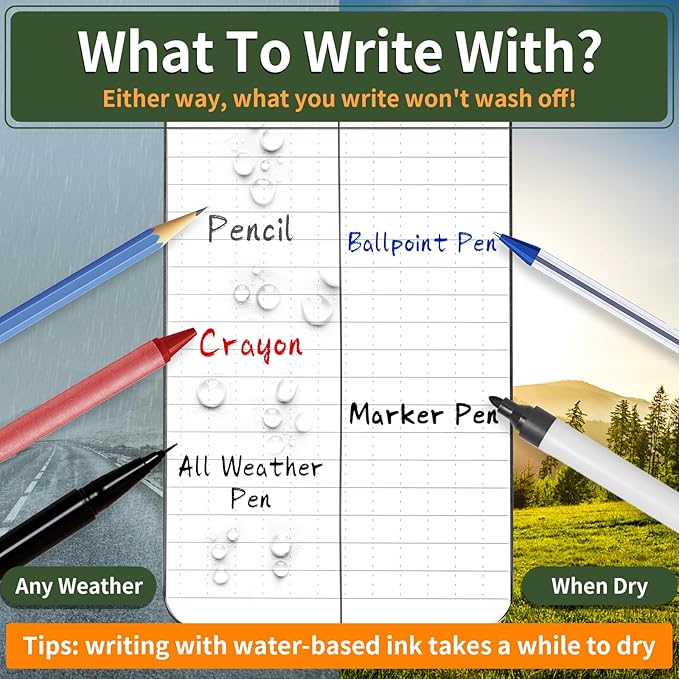 - BEST CHOICE: An ideal waterproof all-weather notebook, great in all weather climates. You can use this weatherproof notebook on various occasions, such as travel, camping, and office, especially for outdoor activities