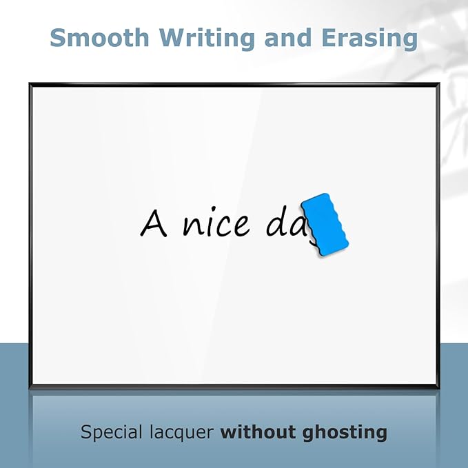 - 【Superior Quality】The hanging white board has durable aluminum frame, galvanized back, and screw-fixed corner. Stain-resistant lacquered surface is smooth for writing and erasing
