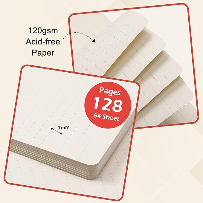 - PREMIUM THICK PAPER - 120 gsm lined paper, our notebook journal is made of high quality acid free paper to help prevent from damages of light and airs to keep notes on the pages clearly. There are 128 pages/64 sheets in this ruled journal, which provide you with plenty space for planning or scheduling.