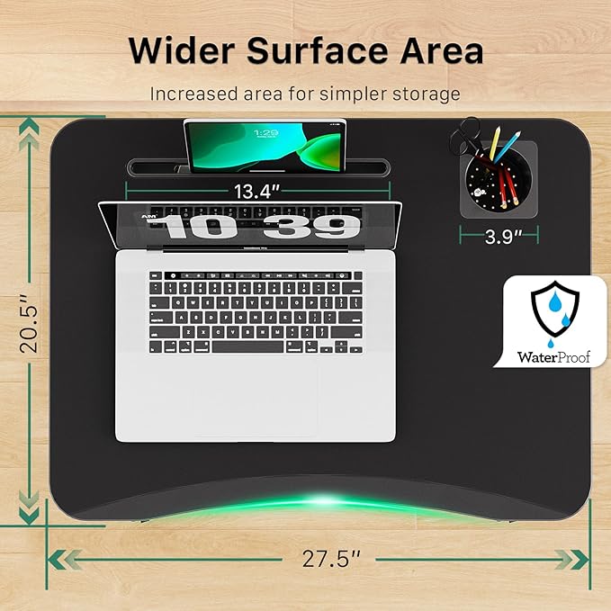 - Strong and Durable: The mobile laptop desk is made of 100% cold-rolled steel, can withstand up to 17.6 pounds of weight. And the table top is made of E0 grade ecological protection wood, which is resistant to dirt and not easy to scratch