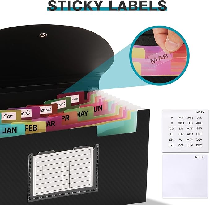- Labels for Organization: Offer adhesive A-Z, Monthly and Blank tab labels to help you locate each pocket for adaptable filing to suit your needs