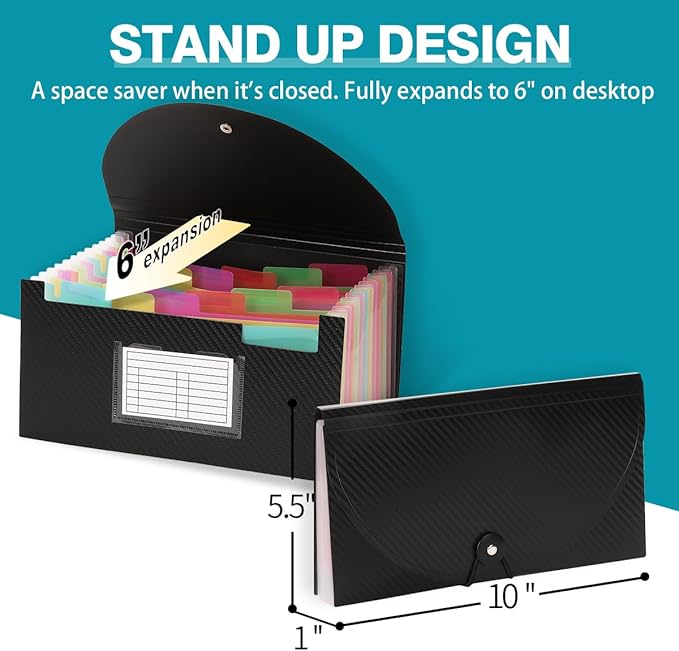 - Thirteen Pockets: Accordion folder is featuring thirteen pockets with a 6" expansion, that could stands up and expands fully on a desk or counter, contents are easy to access