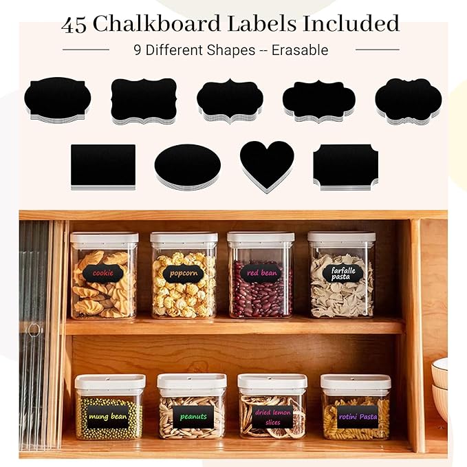 KERIFI Liquid Chalk Markers, Chalk Pens Fine Tip, 12 Vibrant Colors, Wet Erase Markers Fine Point 1mm, Chalk Markers for Blackboard, Glass, Windows, Bistro, 45 Chalkboard Labels Included