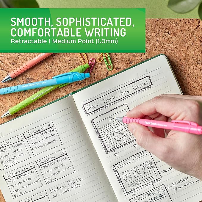 Paper Mate FlexGrip Ultra Ballpoint Pens, Made from Recycled Plastic Materials, Assorted Barrel Colors, Medium Point (1.0mm), Black, 4 Count