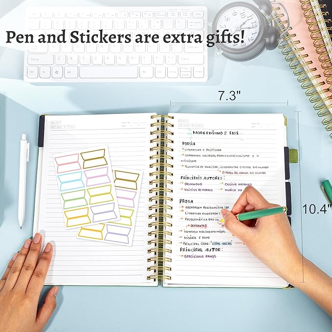- 360 Pages Thick Spiral Journal: 7.3"x10.4", b5 size with 180 sheets/360 pages college ruled paper to last over whole year, and acid-free paper avoids yellow over time. “Weather”, “Week”, “Memo No” and “Date” are at the top of each page for classification and reference.