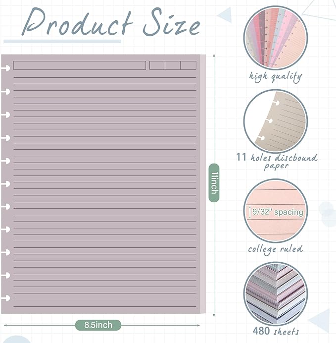 - Abundant Value Pack: you will receive 480 sheets of colored discbound refill paper, in 12 different colors, each with dimensions of about 8.5 x 11 inches, suitable for everyday study or work needs, our paper not only adds a pop of color but caters to volume demands effectively