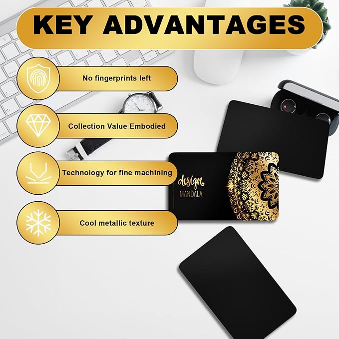 - 【Compatible with Laser Engraving Machines】The metal card has a smooth and glossy surface for easy processing. Our cards can be used with various laser engraving machines, making it easy for you to customize your cards with your desired text, pattern or design
