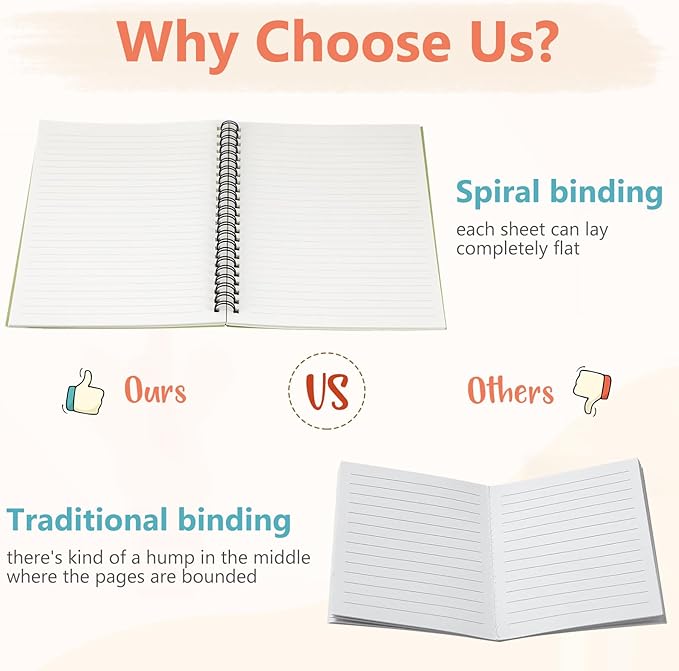 - Smooth to Write: each spiral journal notebook has 60 sheets (120 pages), and each page adopts quality 80gsm white paper, smooth and easy to write, preventing ink infiltrating into the next page, and mild colors can avoid eye fatigue and bring comfortable experience