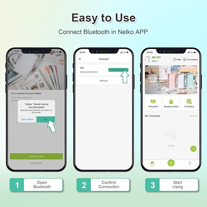 - Easy to Use: NELKO label printer compatible with IOS & Android Phone via bluetooth connection. Step 1: Download "Nelko" APP from Google Play or App Store. Step 2: Install the paper roll. Step 3: Connect the P21 bluetooth within APP. Step 4: Choose a quick template and start printing. It is not compatible with Google phones on Android 14. This label maker machine with tape APP included more than 90 +Fonts, 10+ Languages, 450+ Materials. (Note: This label maker doesn't work with computers)