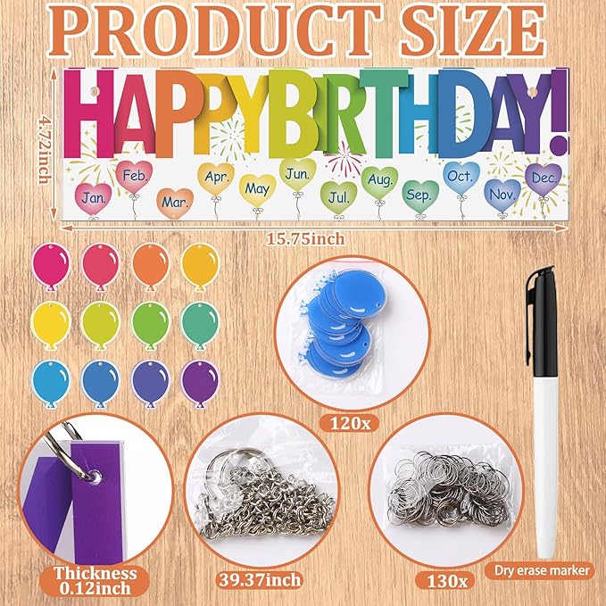 - Creativity and Organization Combined: you will receive 1 piece of birthday calendar wall hanging with 130 metal rings, 120 balloon tags and 1 dry erase marker; This classroom birthday calendar with tags isn't just a handy reminder of your loved ones' special days, but also a piece of decor that adds color and warmth to your living room or bedroom; You can enjoy creating the wall hanging with your family, making the practical calendar a fun, bonding exercise