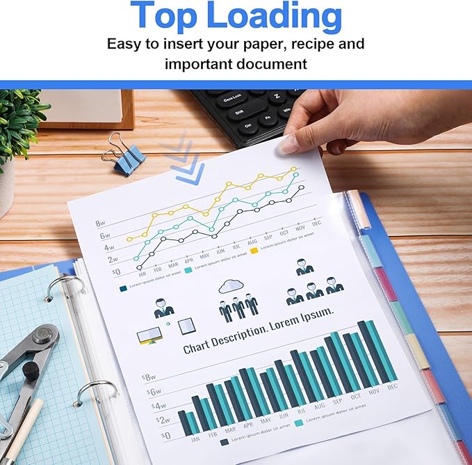 - Package List: the package comes with 12 sets of 96 pcs of sheet protectors for 3 ring binder, each set contains 8 pcs of sheet protectors with 8 different colors tabs, you can easily organize files and quickly find what you need with these 3 ring binder dividers, sufficient quantity offers you ample organization options for your documents