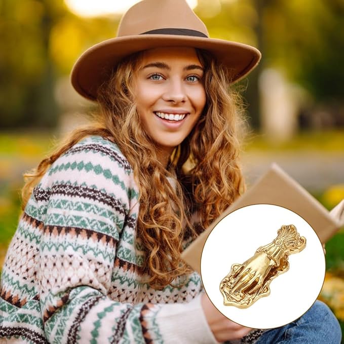 - Packaging Includes: You will receive 1pcs golden lady's hand shaped book clip, the book clip size about 88mm long, 39mm wide, 30.5mm thick, hole is 5.5mm. The right size is easy to use and carry, you can not only use it as a book clip to hold your books, but also as a decoration for your bag.