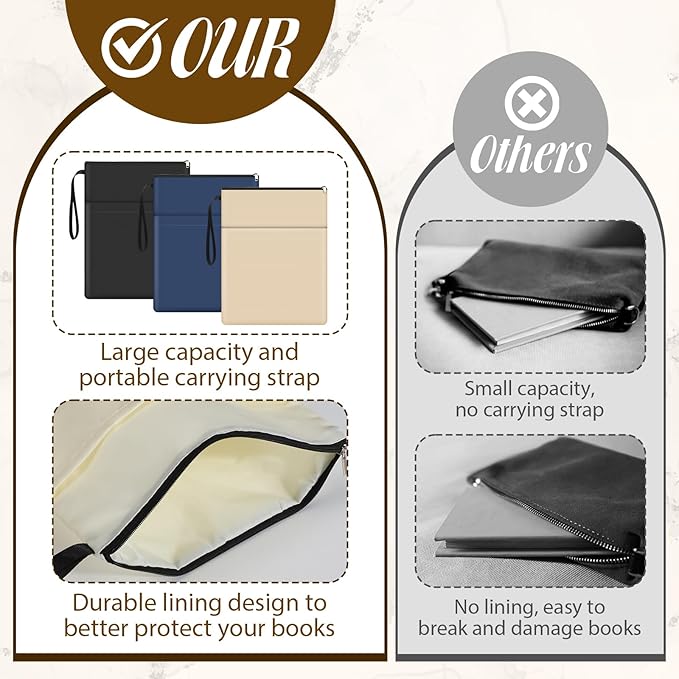 - Product Quantity and Size: contains 3 solid color book covers, colors are navy blue, black, beige, each book cover has a zipper, sized approx. 11.8 x 9 inch/ 30 x 23 cm, suitable for most self published books, standard paperback books, large paperbacks and regular hardcovers, please be sure to measure your book before purchasing to make sure it will fit you