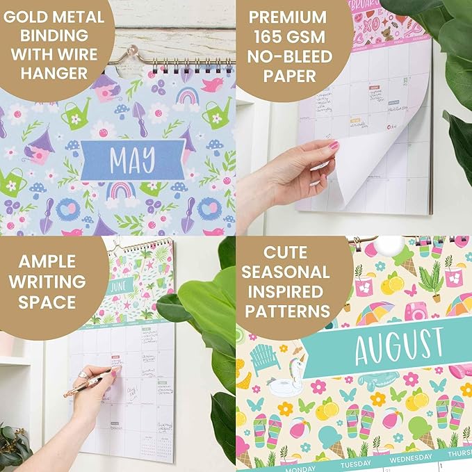 - PREMIUM FEATURES: Extra thick 165gsm bright white paper that won't bleed through and a sturdy gold wire hanger. Bonus features include shaded weekends, holidays, and daylight saving time integrated into the calendar.