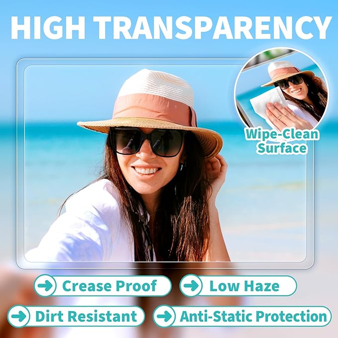 - 【High Transparency】 Made from premium PET material, these thermal laminating pouches offer a clear and glossy finish, ensuring sharp visibility for photos and documents. Designed to resist bends, creases, and dirt, they feature low haze, anti-static properties, and a wipe-clean surface, ensuring lasting clarity and protection.